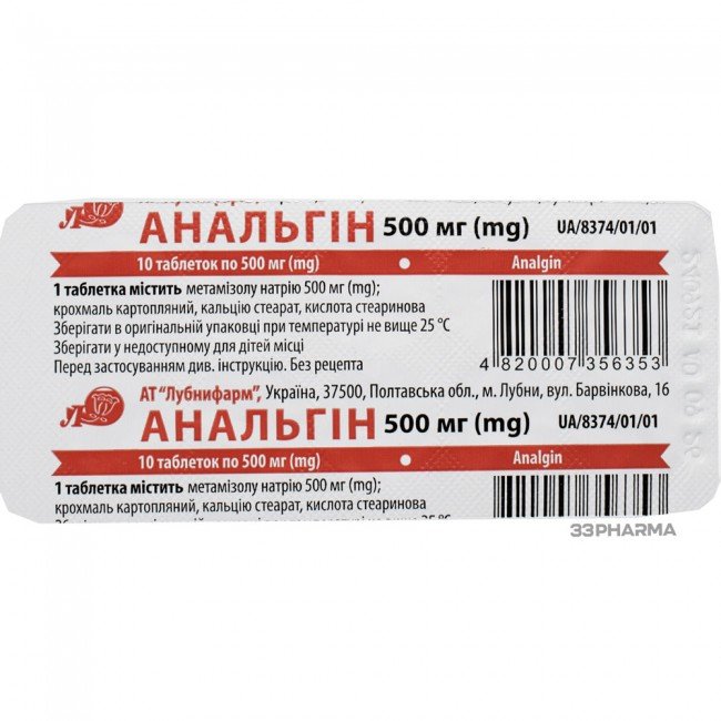 Specification Buy Analgin Lubnypharm Metamizol 500 mg 10 tablets