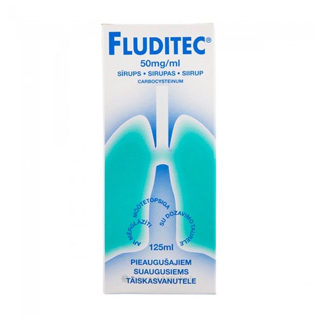 - The syrup is recommended for the treatment of adults and children over 15 years of age. For precise syrup dosing, a dosing cup with divisions is included. One dosage cup filled with syrup to the 1 ml mark contains 50 mg of carbocysteine.