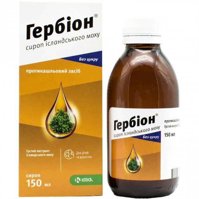 Herbion syrup contains a thick extract of Icelandic moss, which has an antitussive, immunostimulating, antibacterial and anti-inflammatory effect.