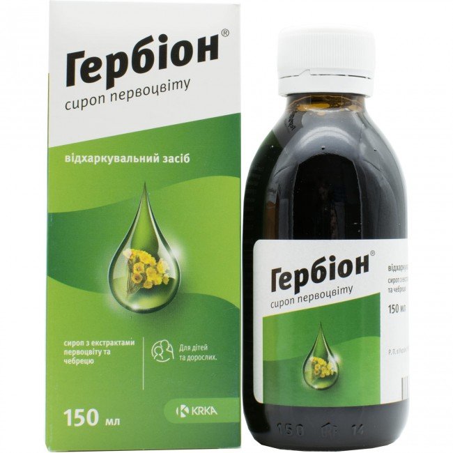 The drug Herbion primrose syrup contains aqueous extracts of primrose root, thyme herb and levomenthol. the influence is based on pharmacological research and many years of practical application. these active substances facilitate the expectoration of thick mucus from the bronchi during respiratory inflammation, colds and flu.