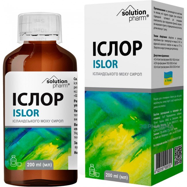 Islor is a syrup that serves as a source of biologically active substances, providing antitussive, antibacterial, and anti-inflammatory effects. It is recommended for: