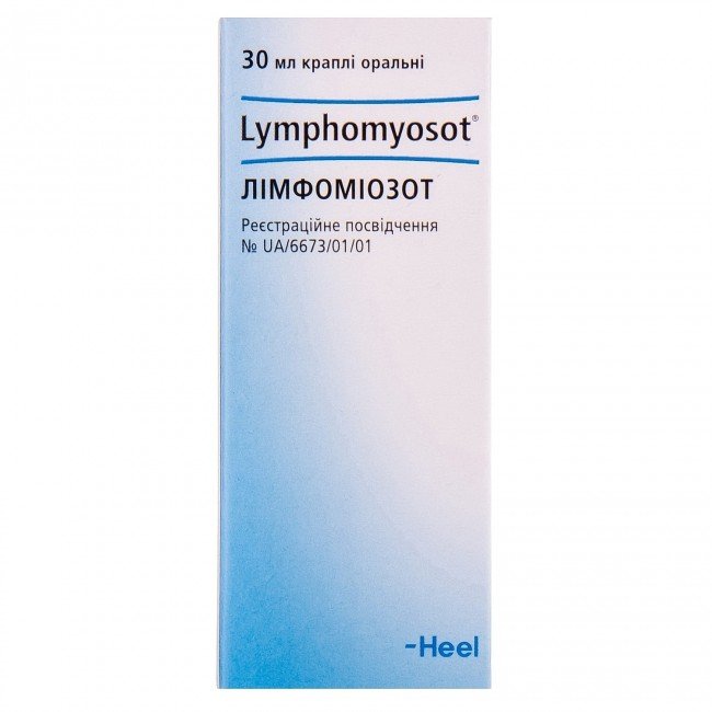 Lymphomyosot in the form of drops improves the outflow of lymph from all organs and tissues, has a detoxifying, antiexudative, immunocorrective, anti-inflammatory effect, which is based on the activation of the body's defenses and the normalization of impaired body functions due to substances of plant, mineral and animal origin that are part of the drug