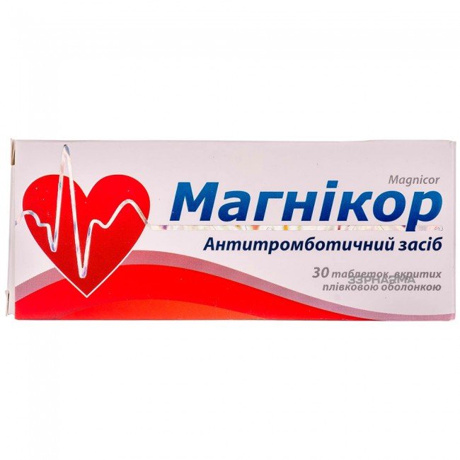Magnicor - Antithrombotic agent, analgetic, anti-inflammatory, antipyretic and antiplatelet agent. Antiplatelet properties increase bleeding time.
