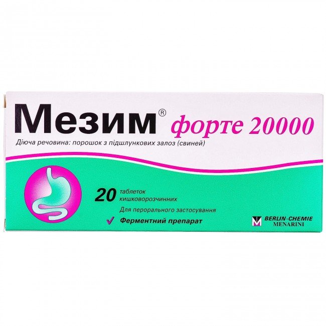 Mezim Forte 20000 is a digestive improver, including enzymes. Multienzyme drug for the treatment of disorders of the exocrine function of the pancreas accompanied by digestive disorders