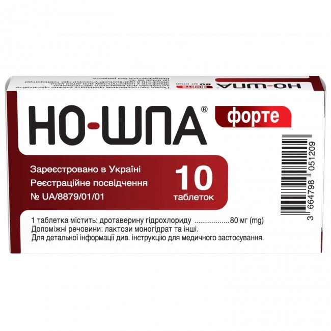 | Ingredients | ACTIVE: drotaverine hydrochloride 80 mg INACTIVE: magnesium stearate, talc, povidone, corn starch, lactose. |
