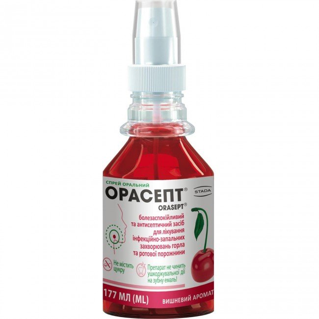 Orasept is used as a local antiseptic (bactericidal and antifungal effect) and a local anesthetic drug for treating the mucous membrane of the oral cavity and pharynx. Glycerin has a softening effect on the oral mucosa.