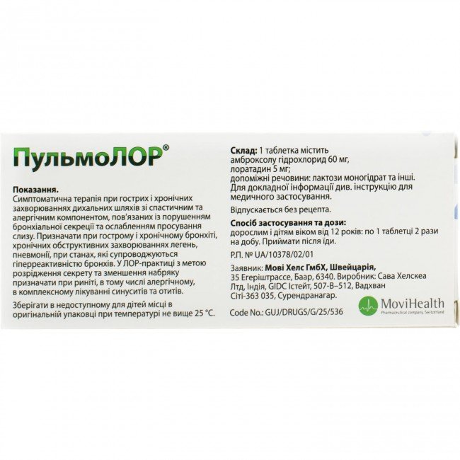 Description Buy Pulmolor 20 tablets