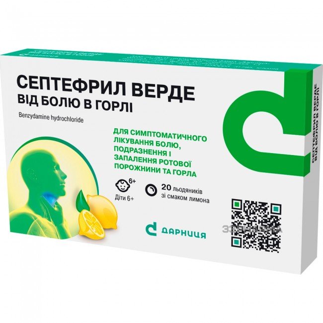 Description Buy Septefril Verde for sore throat 3 mg Lemon 20 lozenges