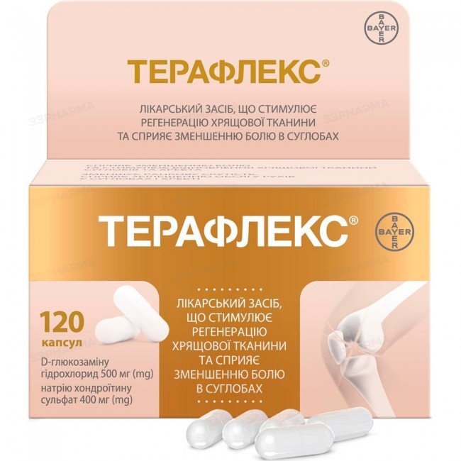 Teraflex® is a medicinal product that stimulates the regeneration of cartilage tissue. It exerts anti-inflammatory action at the cellular level, promotes the synthesis of endogenous proteoglycans and hyaluronic acid, and reduces catabolic activity of chondrocytes by inhibiting cartilage-degrading enzymes.