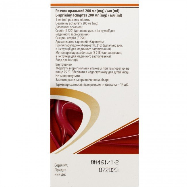 | Ingredients | L-arginine aspartate 200 mg |