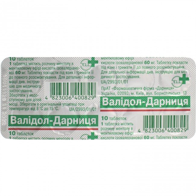Description Buy Validol Darnytsia 60 mg 10 tablets